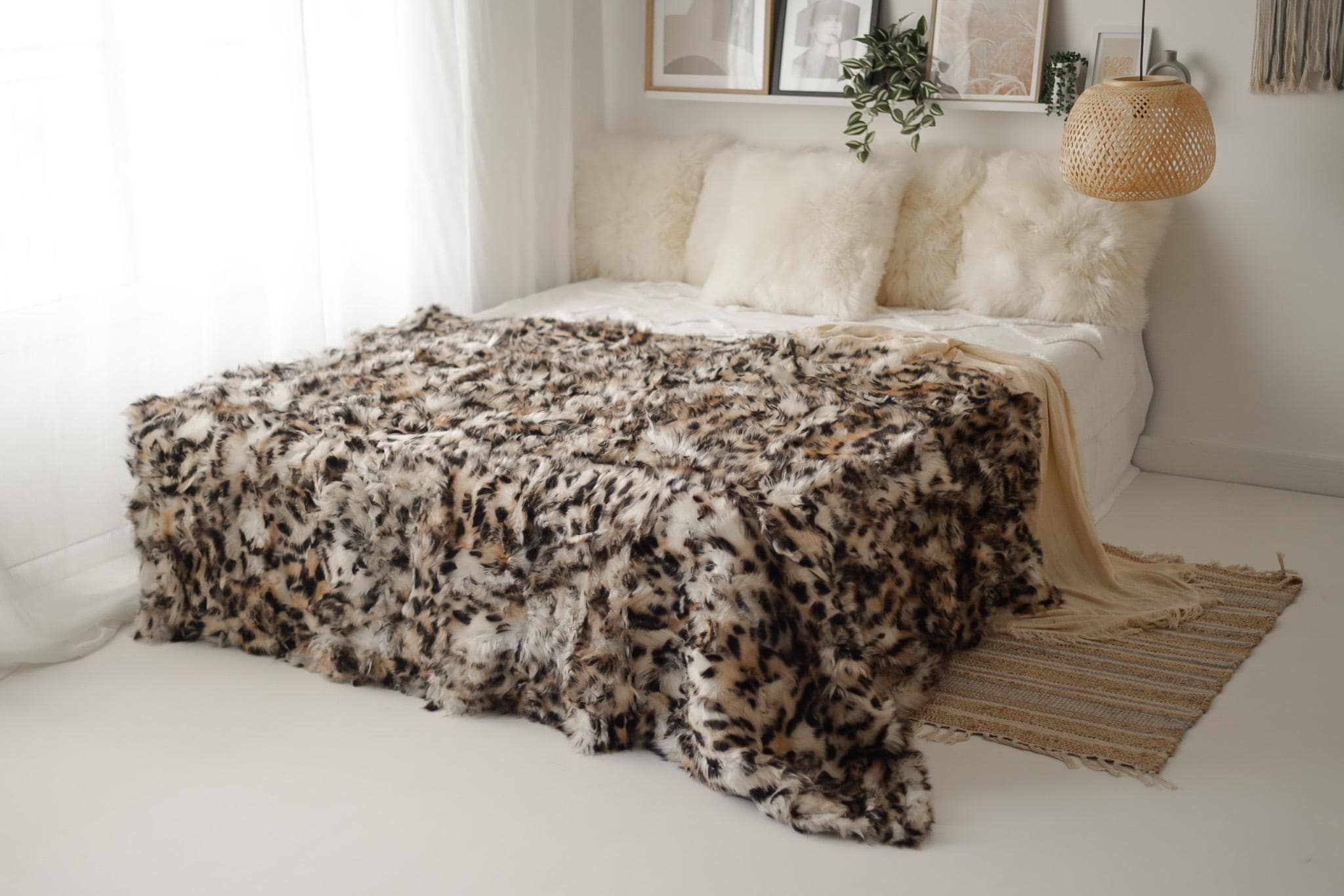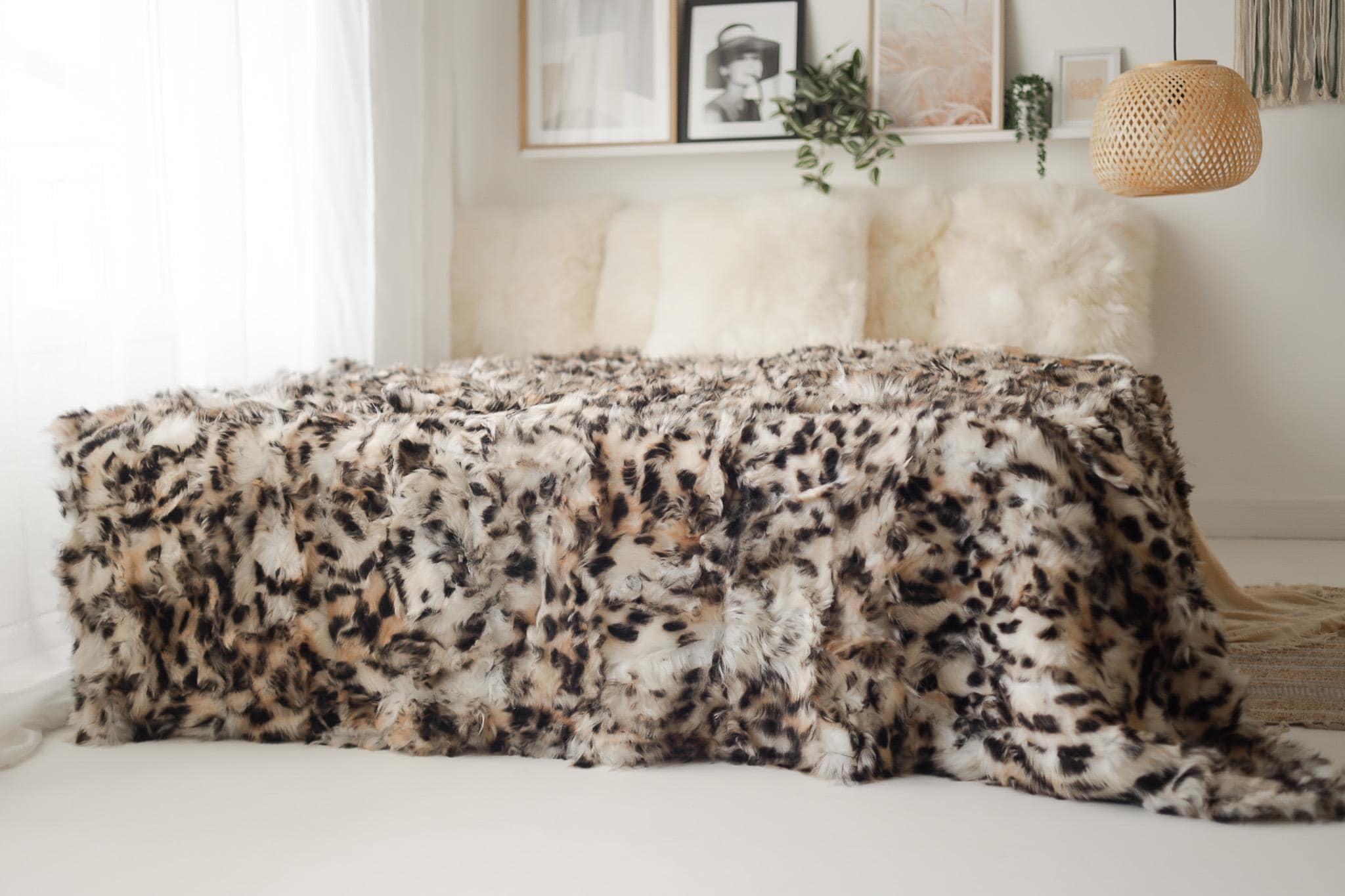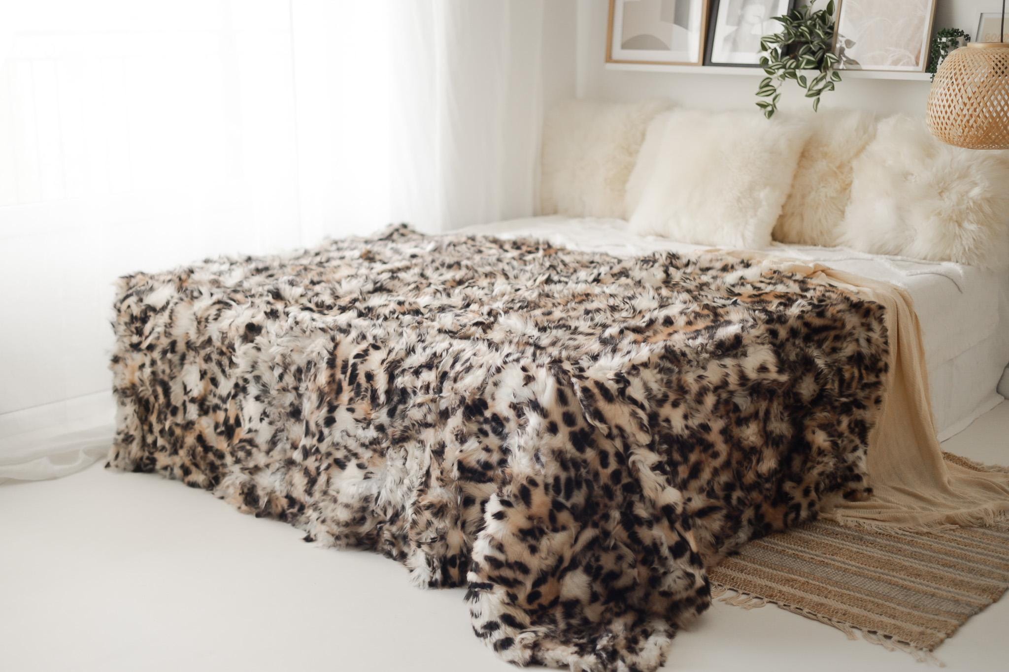 Luxurious Patchwork Toscana Sheepskin Rug Fur Throw | Real Fur Blanket | Sheepskin throw | Black White Sheepskin Blanket Boho |KFU2