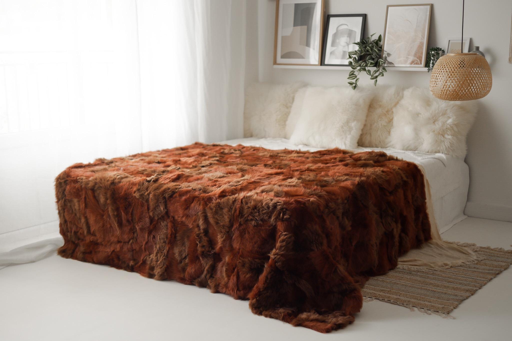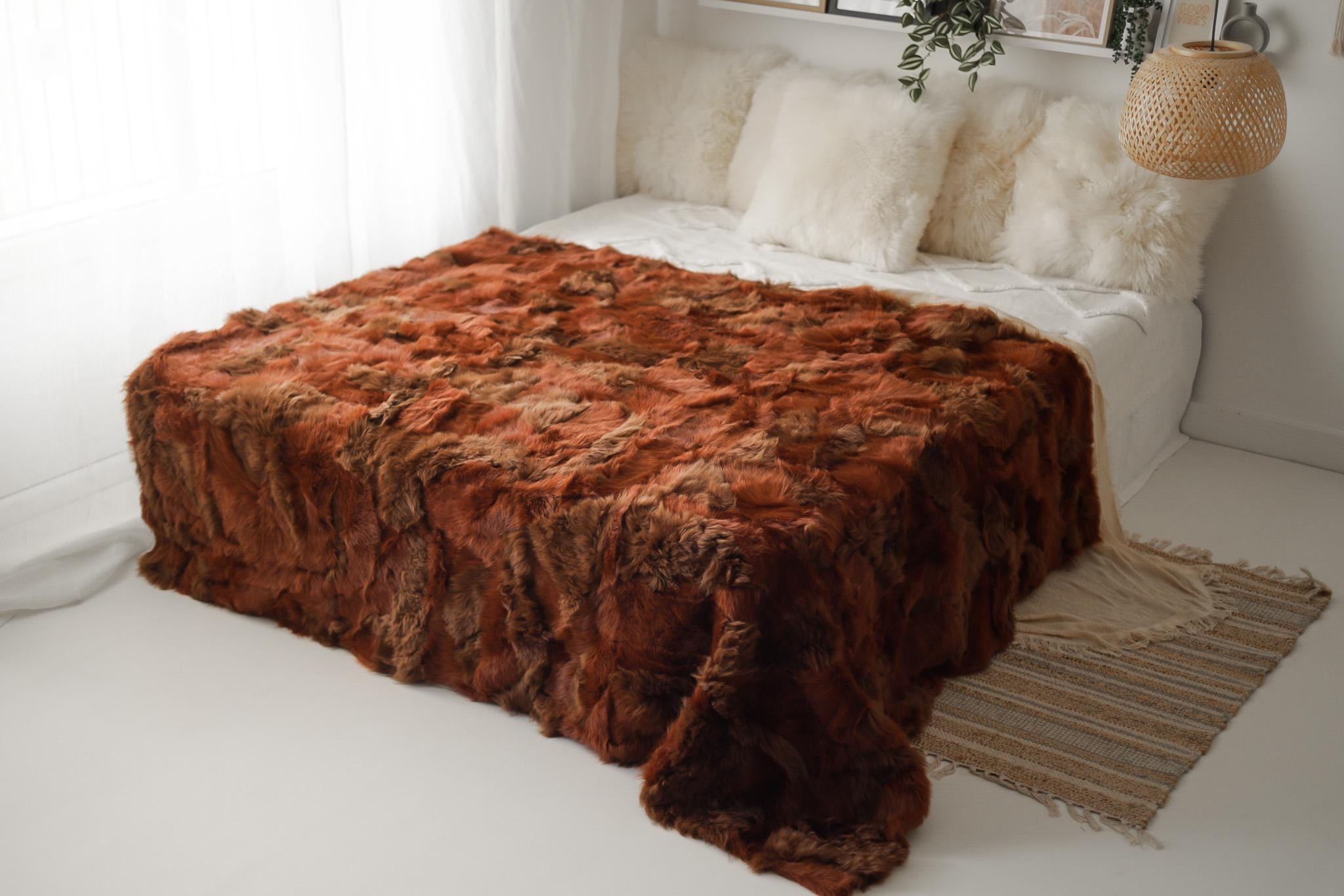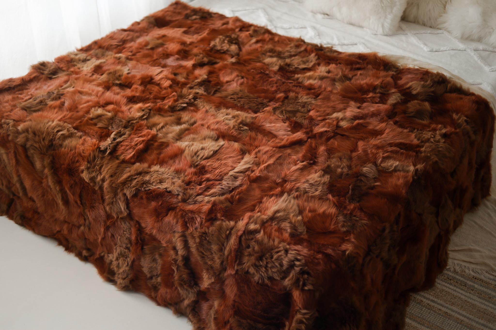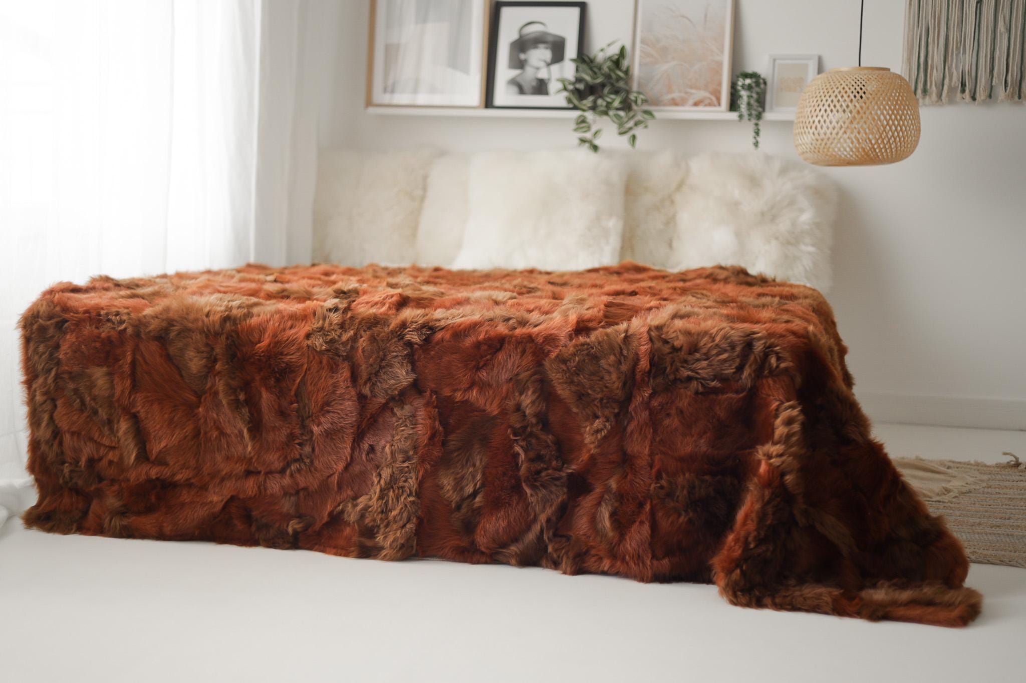 Luxurious Patchwork Toscana Sheepskin Rug Fur Throw | Real Fur Blanket | Sheepskin throw | Ginger color Sheepskin Blanket Boho |KFU4