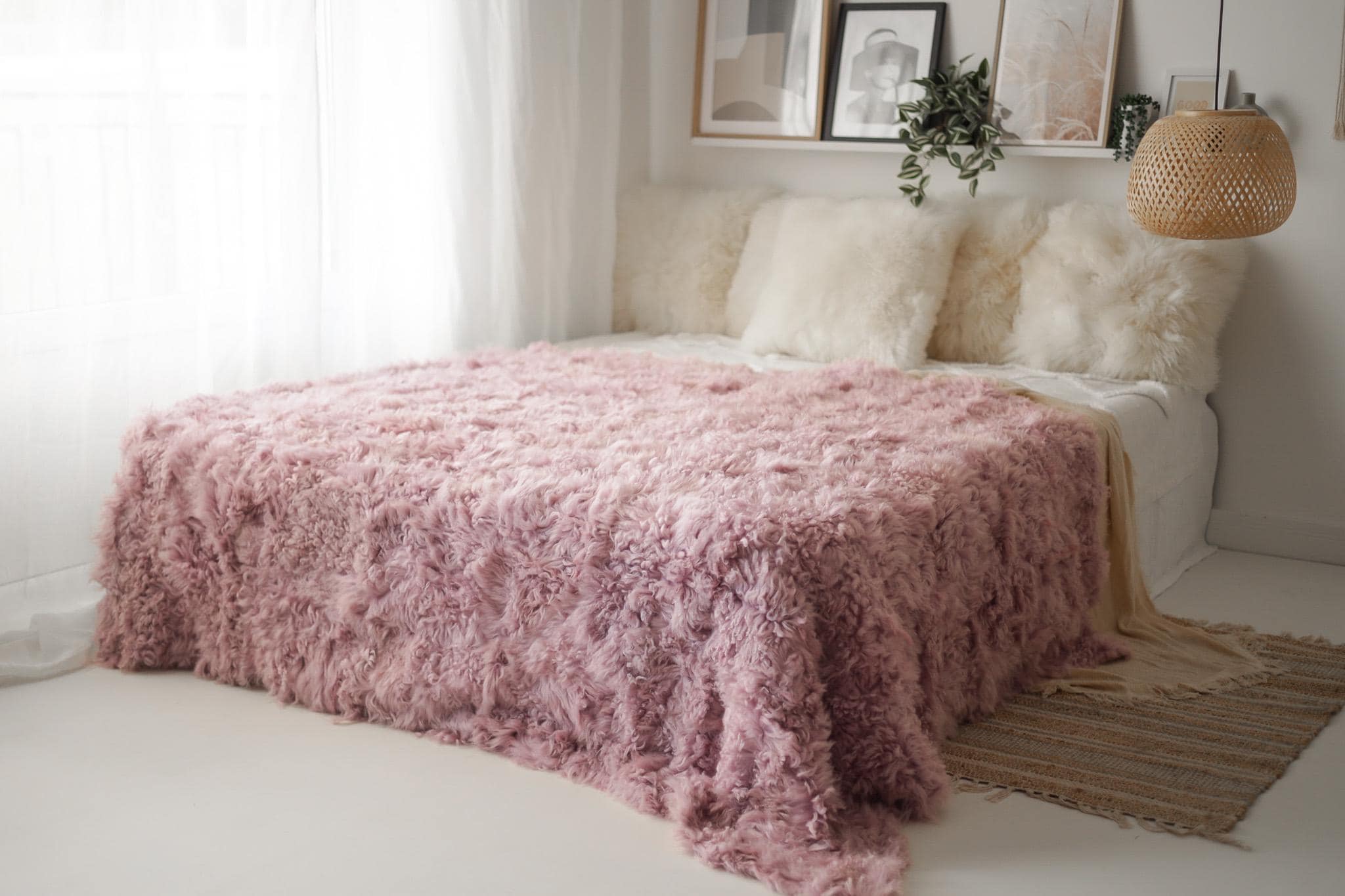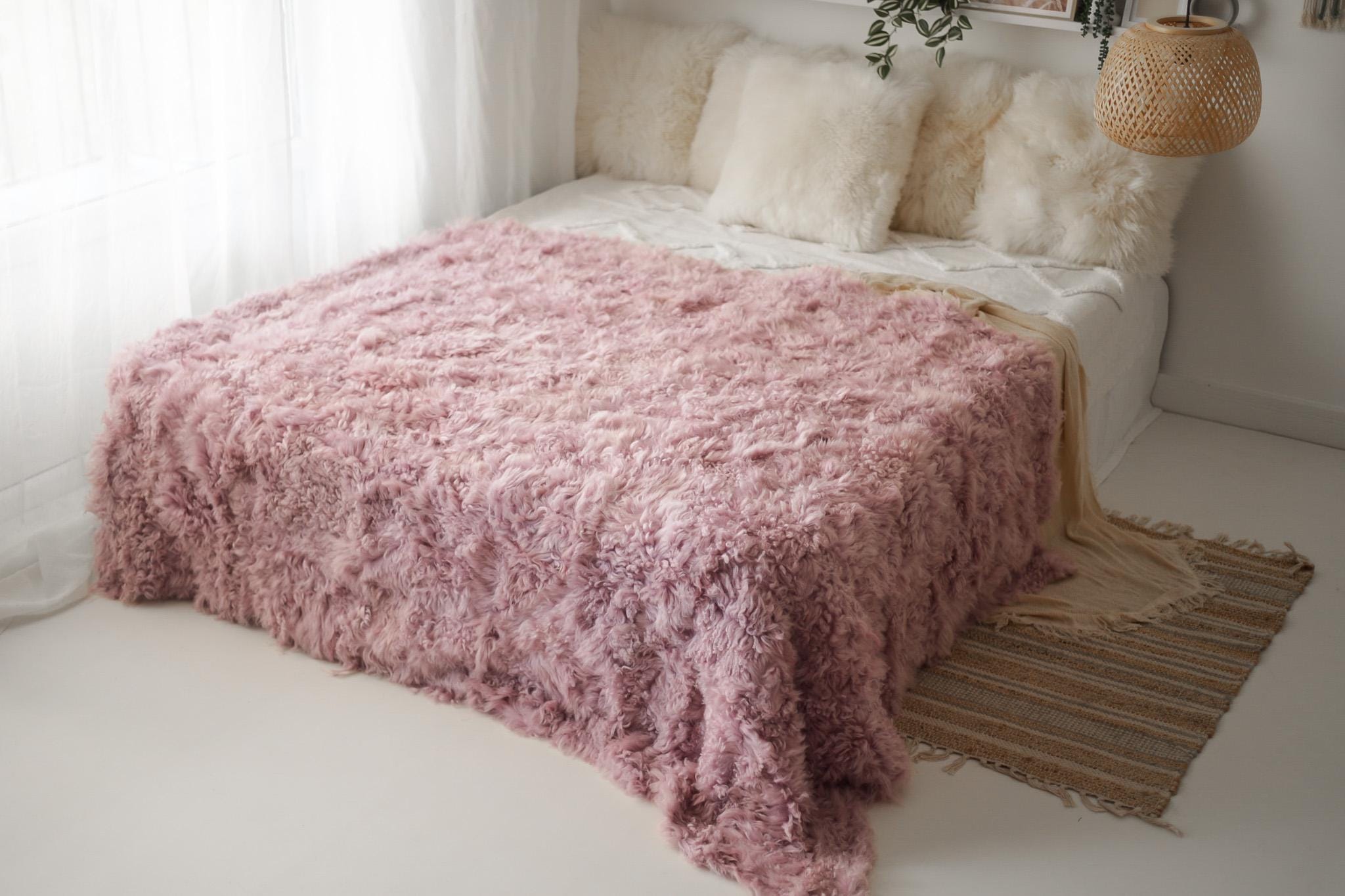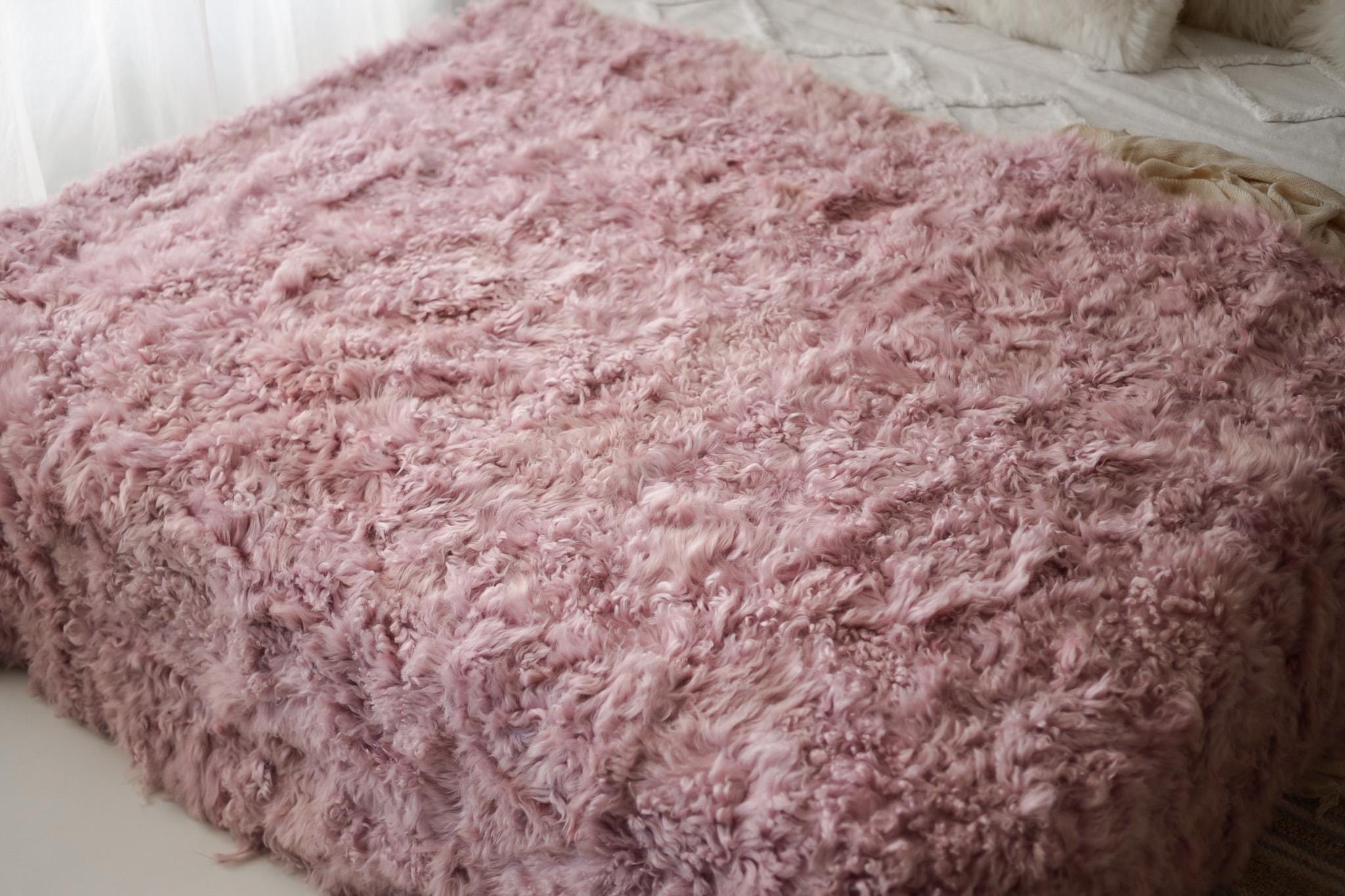 Luxurious Patchwork Toscana Sheepskin Rug Fur Throw | Real Fur Blanket | Sheepskin throw | Lilac color Sheepskin Blanket Boho |KFU7