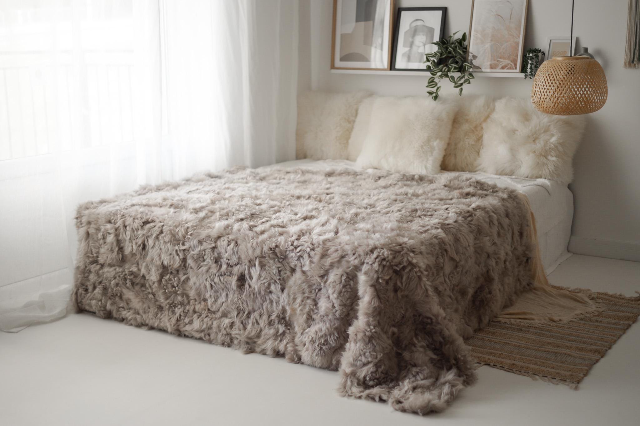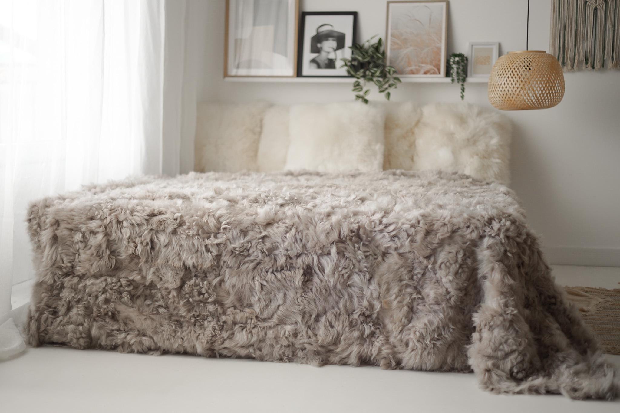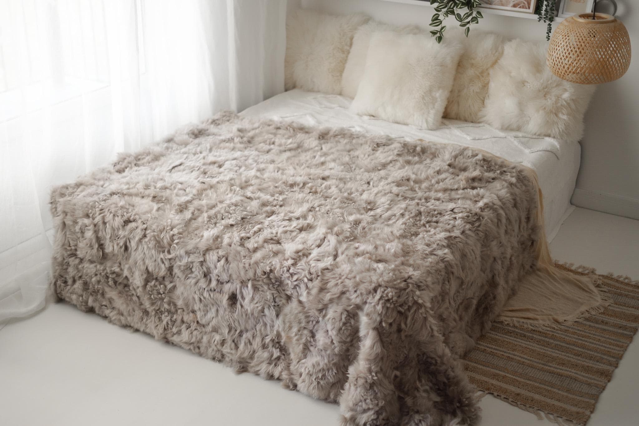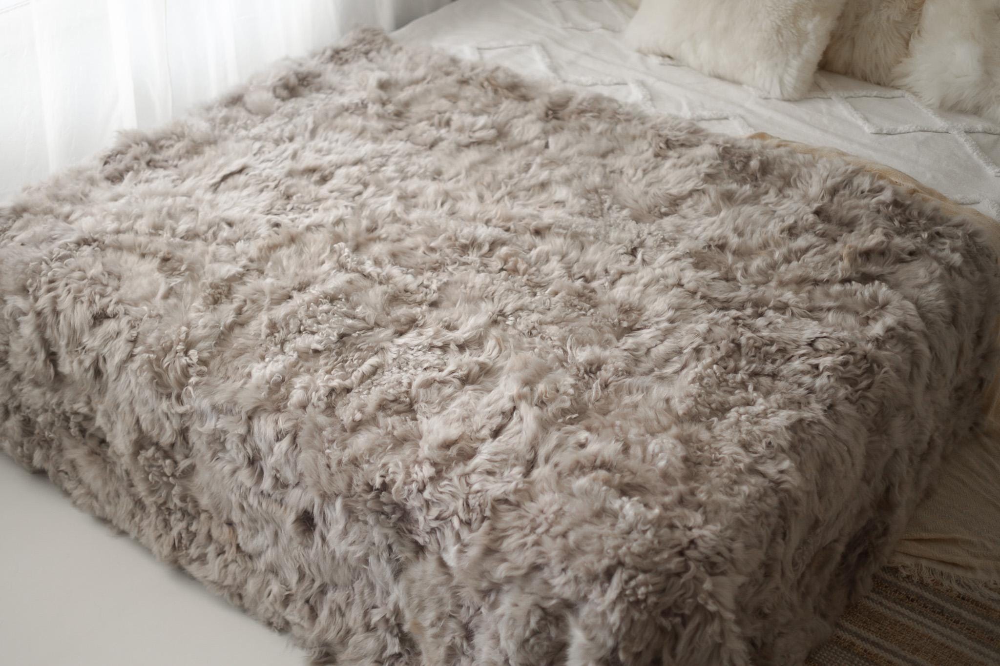 Luxurious Patchwork Toscana Sheepskin Rug Fur Throw | Real Fur Blanket | Sheepskin throw | Taupe color Sheepskin Blanket Boho |KFU6