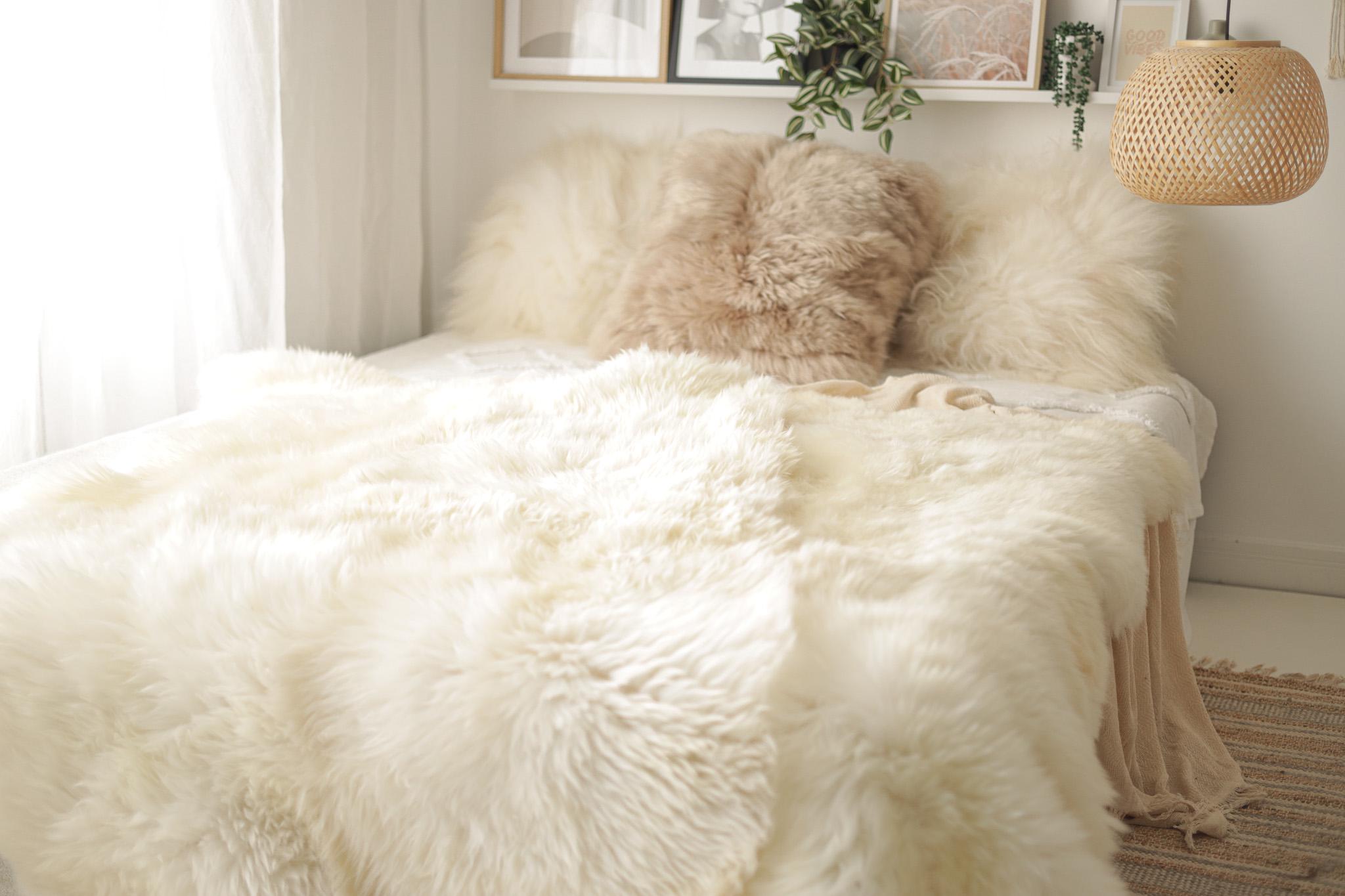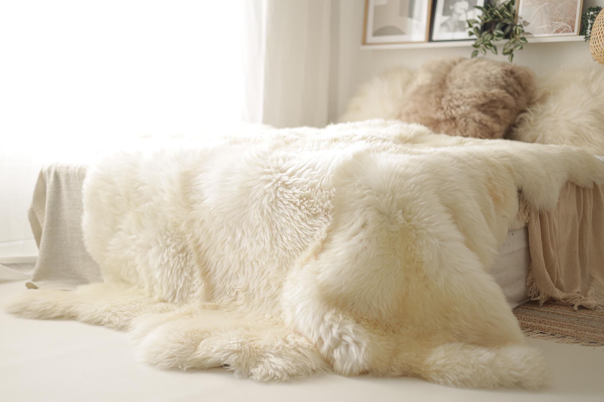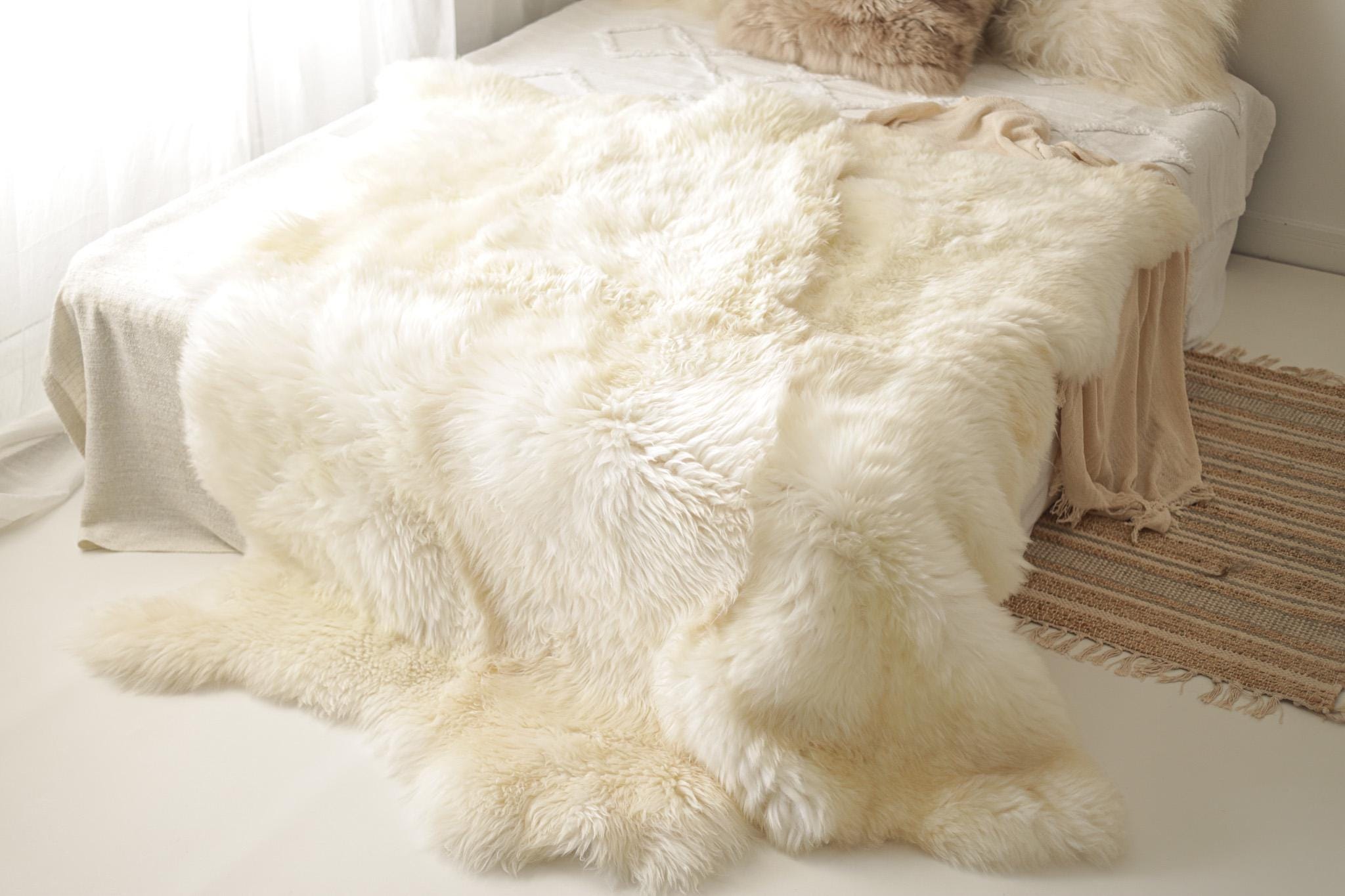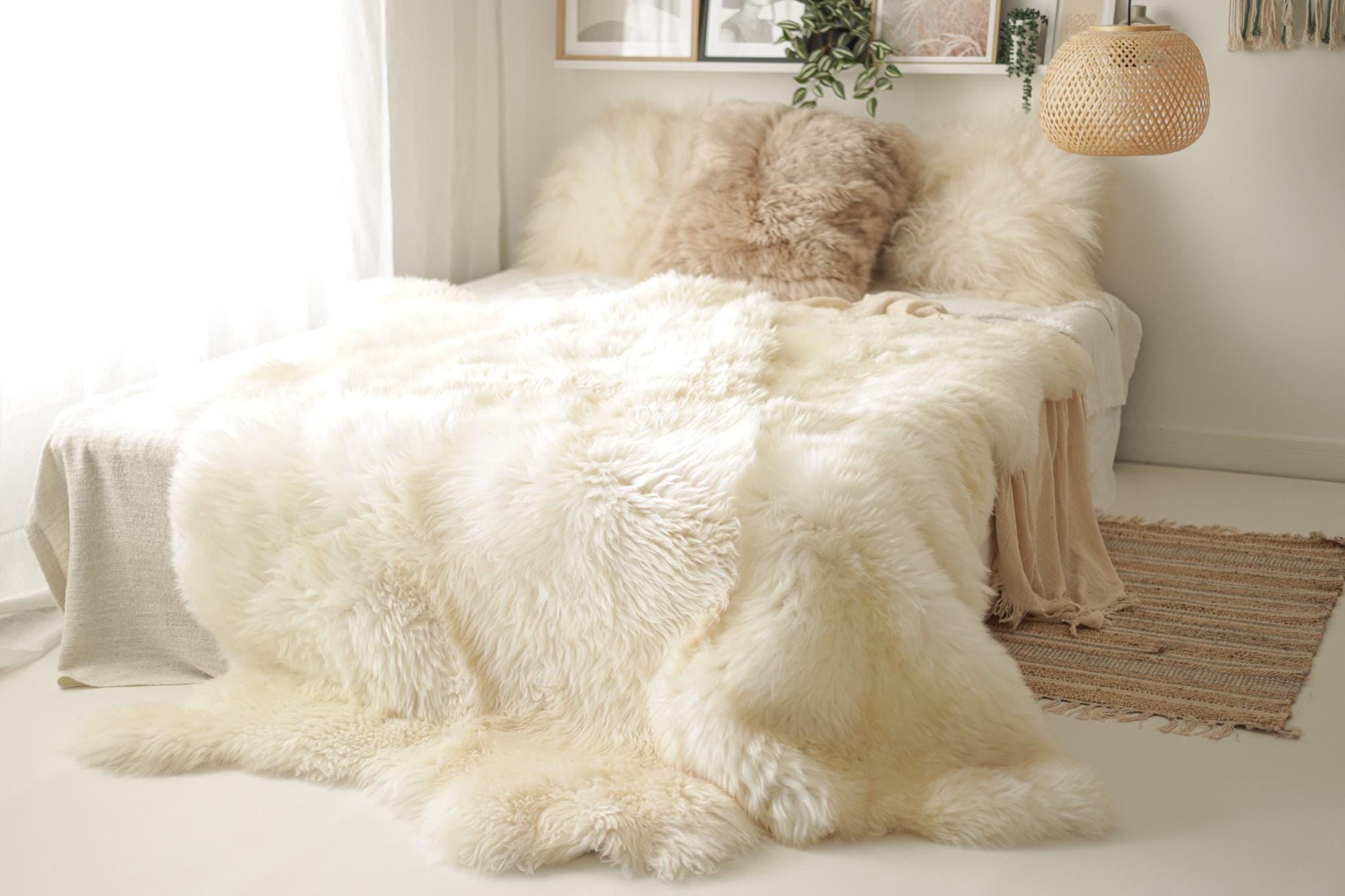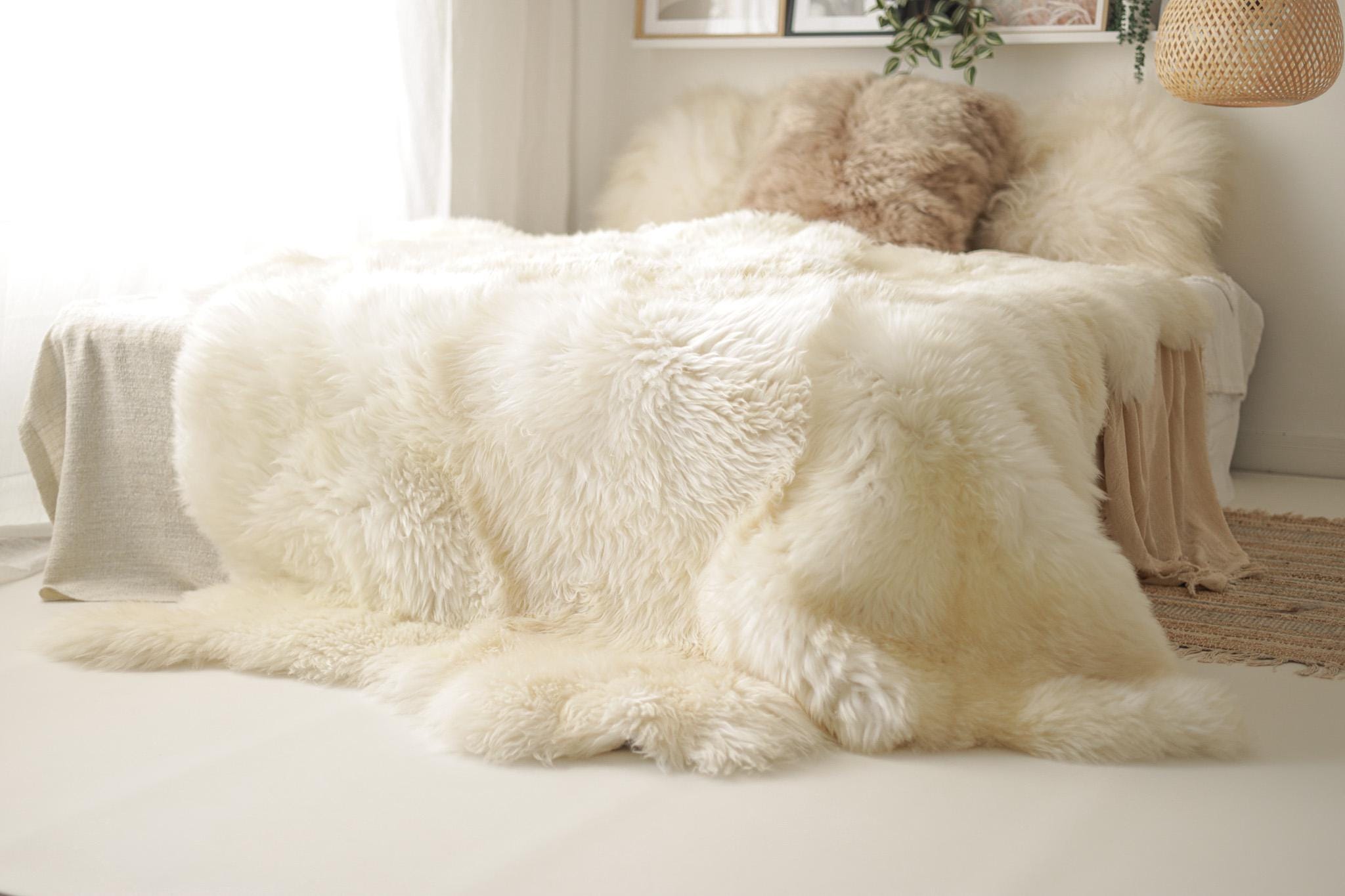 Real Fur Sheepskin Throw | Super Large | Sheepskin Rug | Boho Blanket | Merino Sexto sheepskin Made Of 6 Sewn Sheepskins | Scandinavian Home