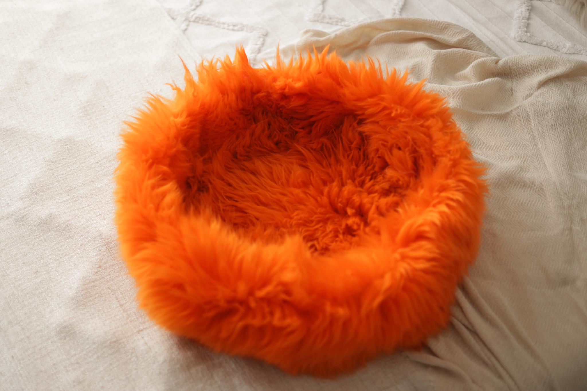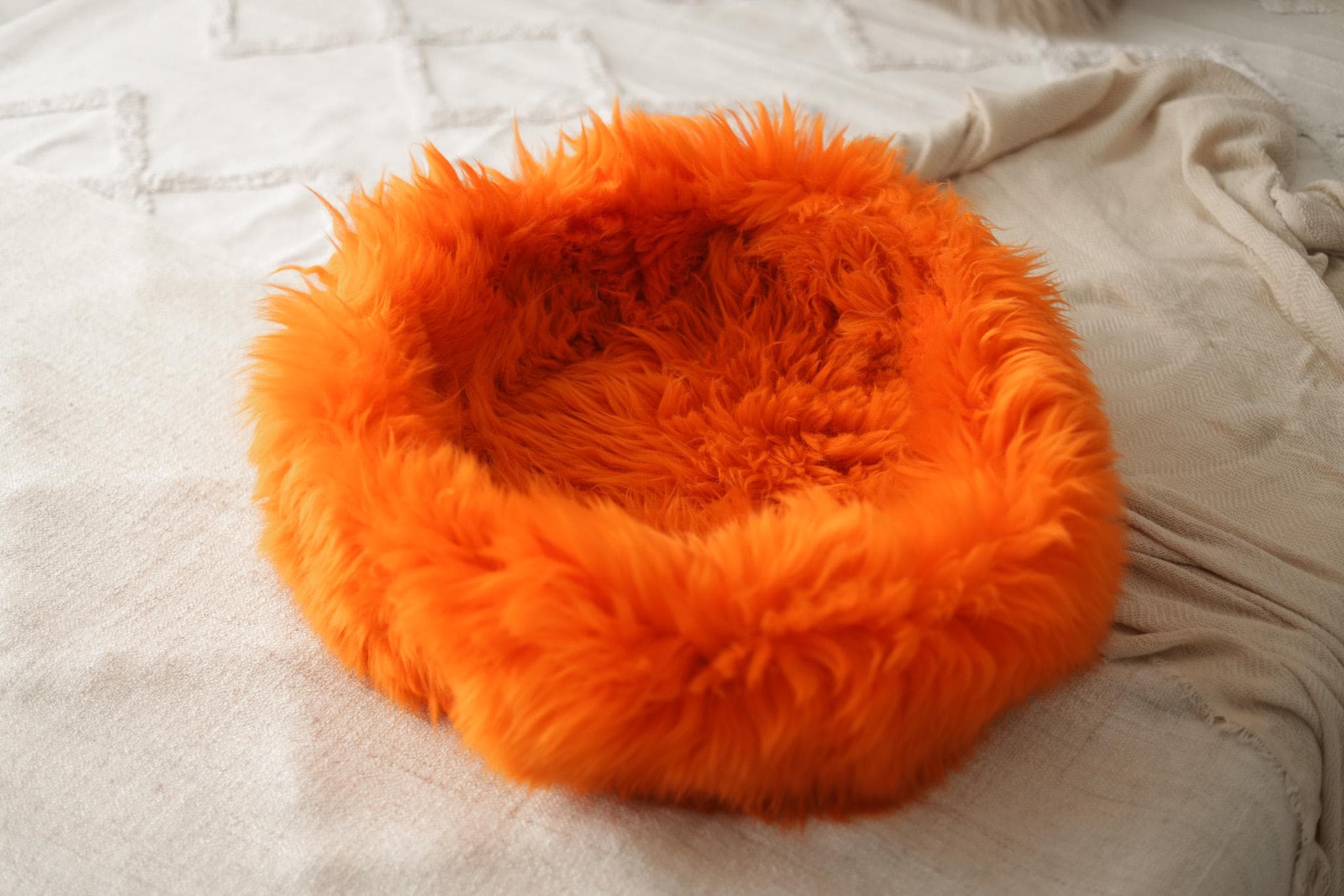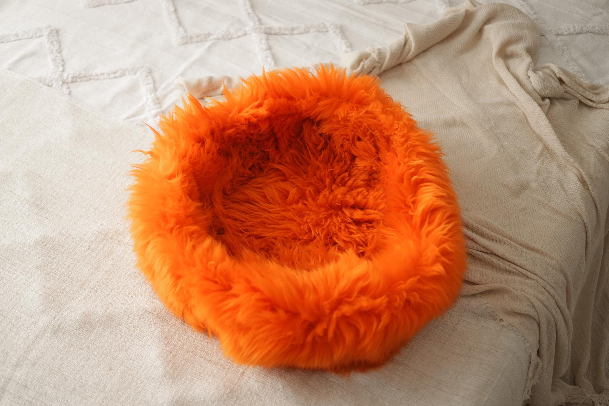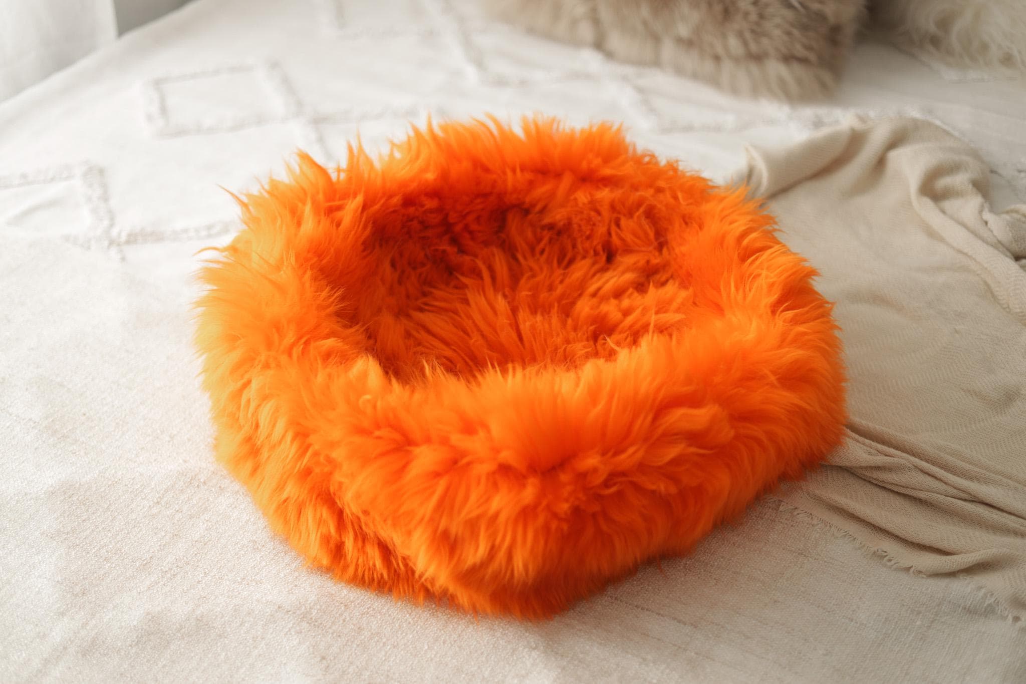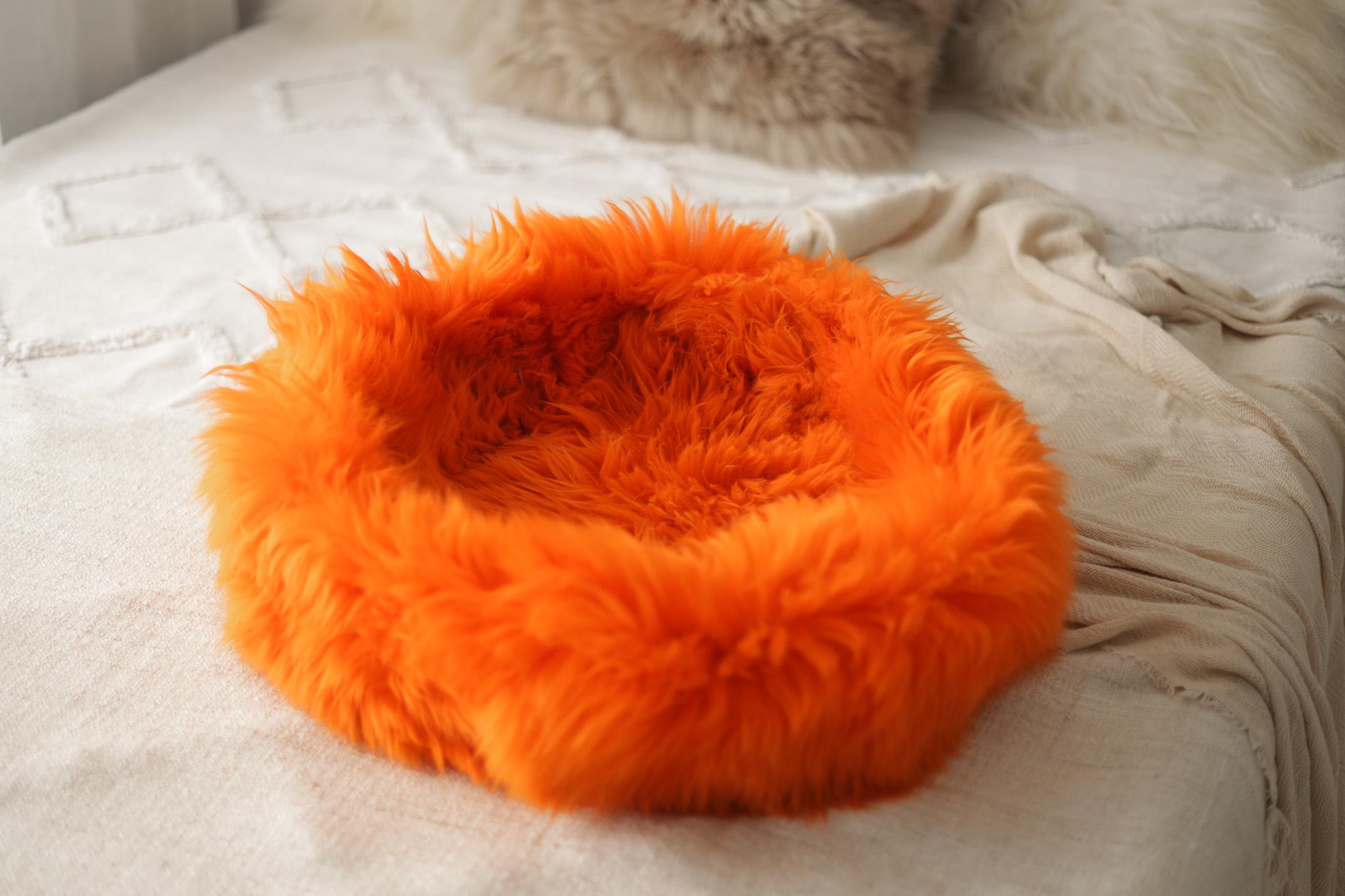 Sheepskin Cat bed Cat cave Pet bed Cat house Pet Furniture Hand Made - Genuine Real Sheepskin Orange color