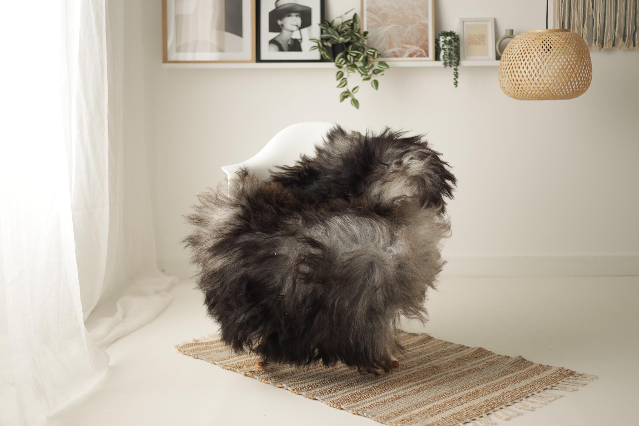 Real Icelandic Sheepskin Rug Scandinavian Decor Sofa Sheepskin throw Chair Cover Natural Sheep Skin Rugs Gray Black #IS262