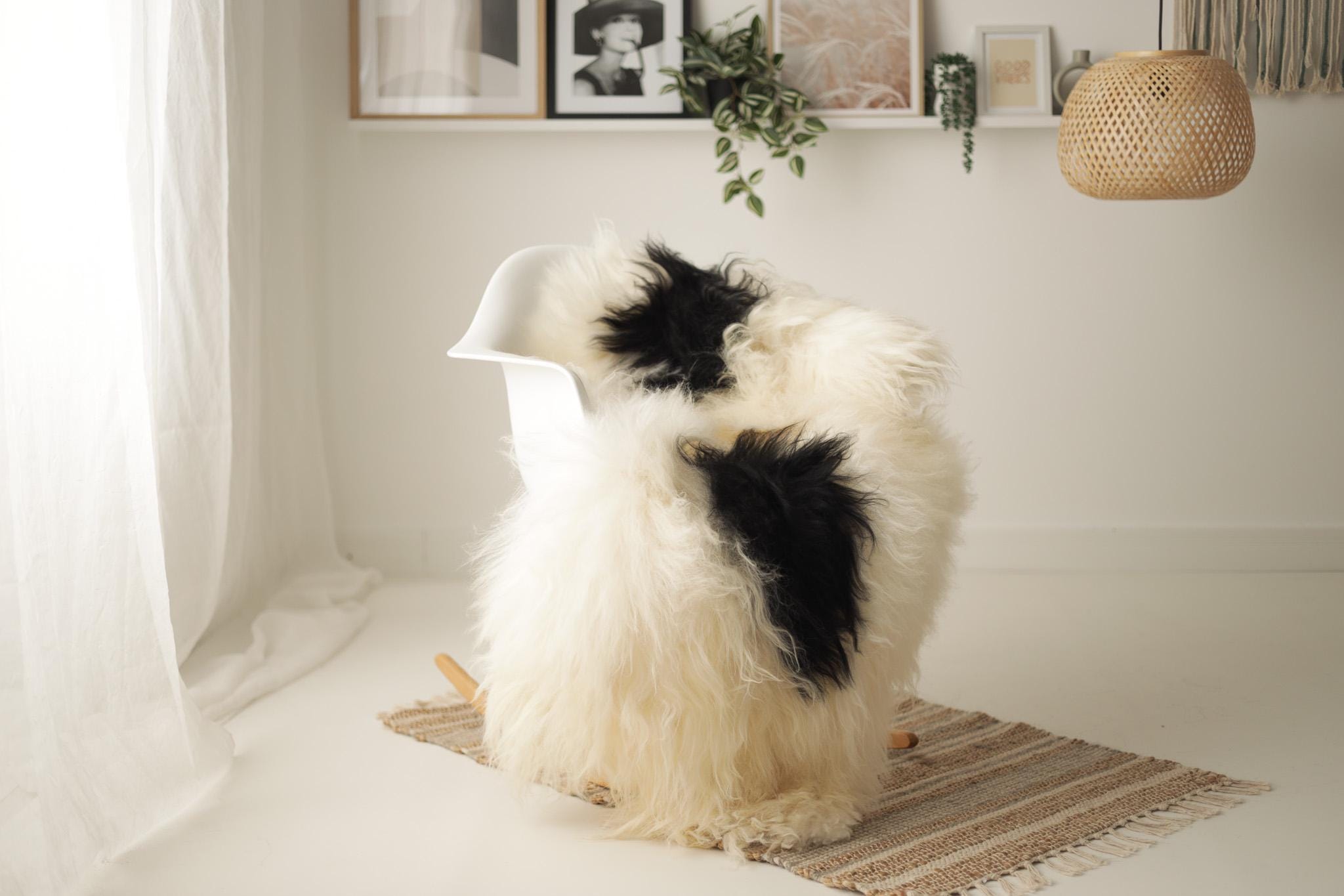 Real Icelandic Sheepskin Rug Scandinavian Decor Sofa Sheepskin throw Chair Cover Natural Sheep Skin Rugs Ivory Black #IS267